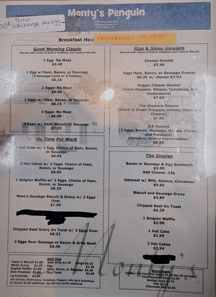 1 Egg W/Ham, Bacon, Or Sausage